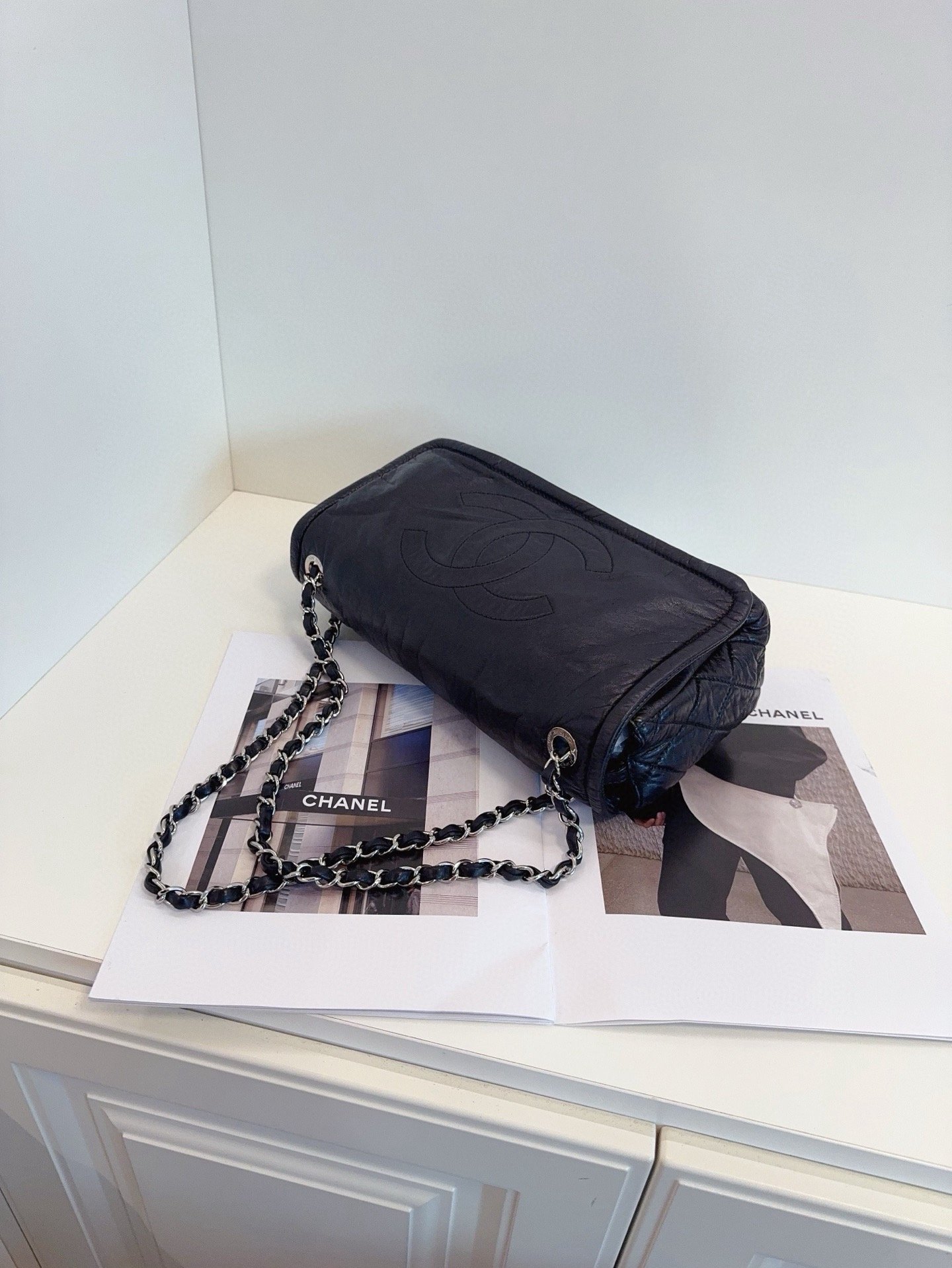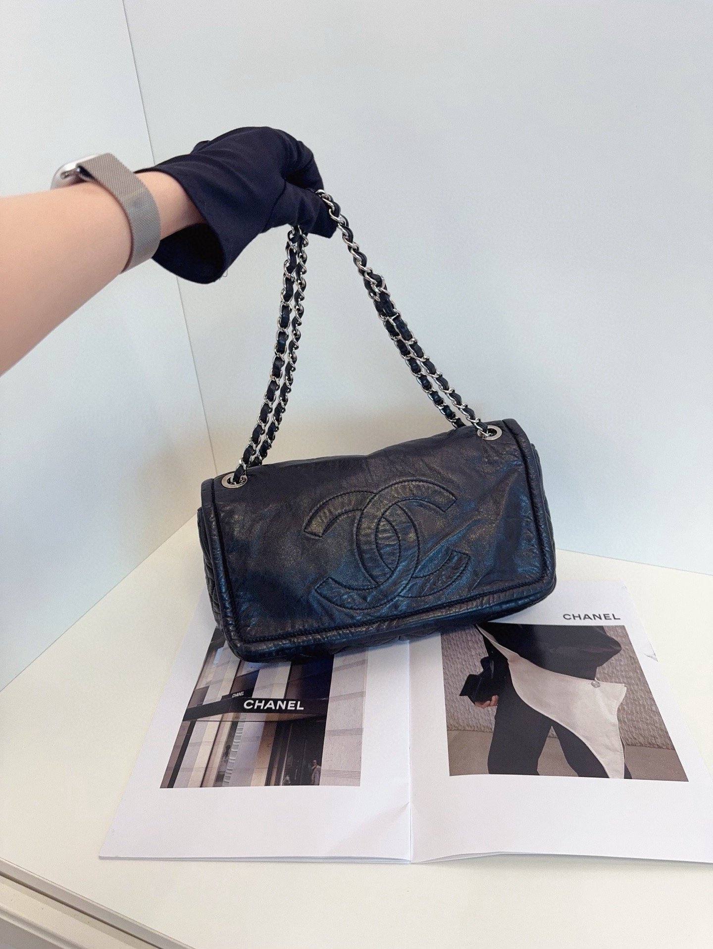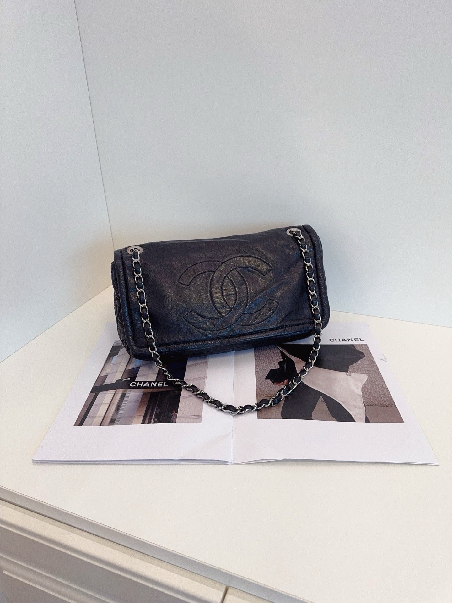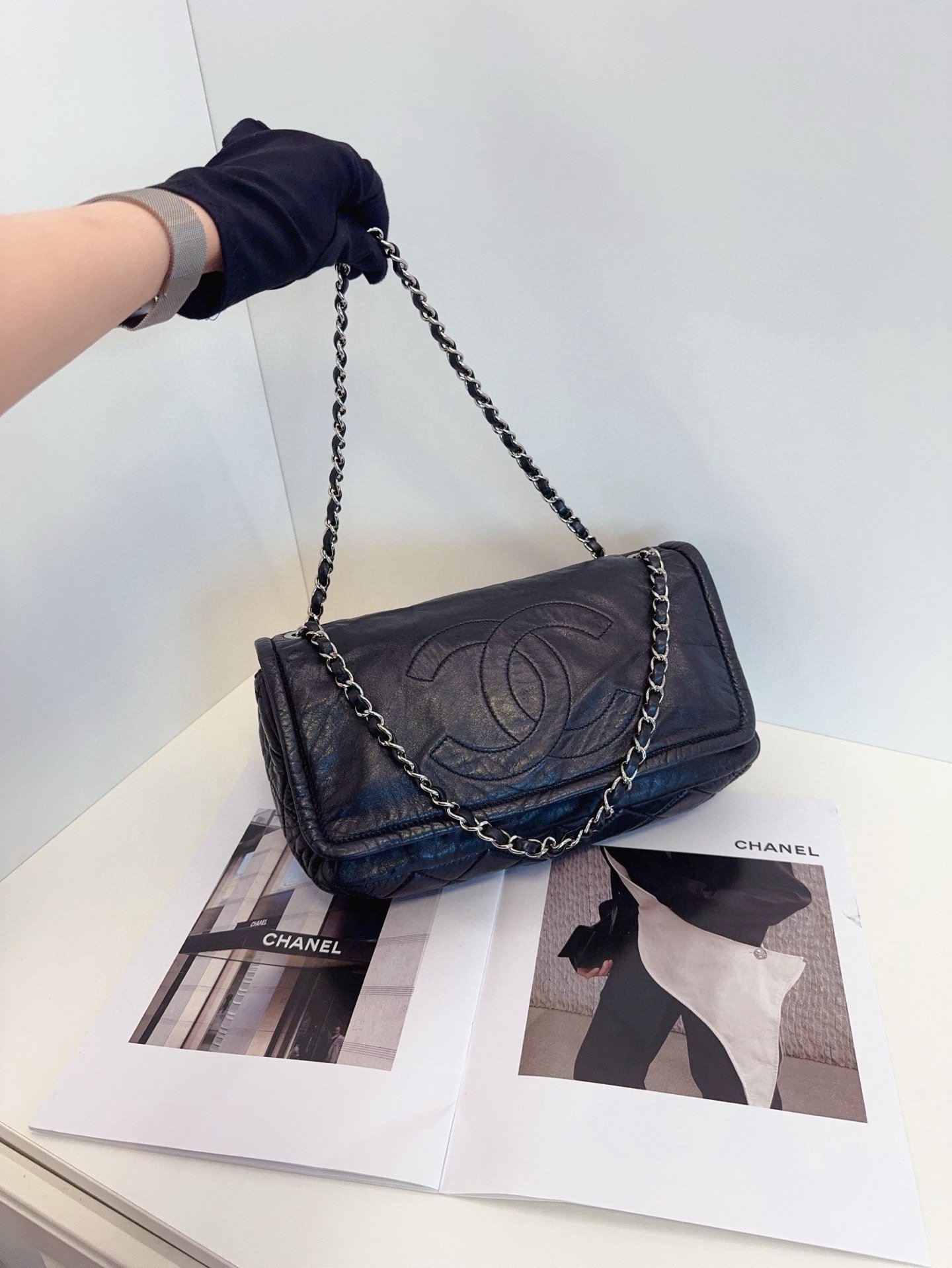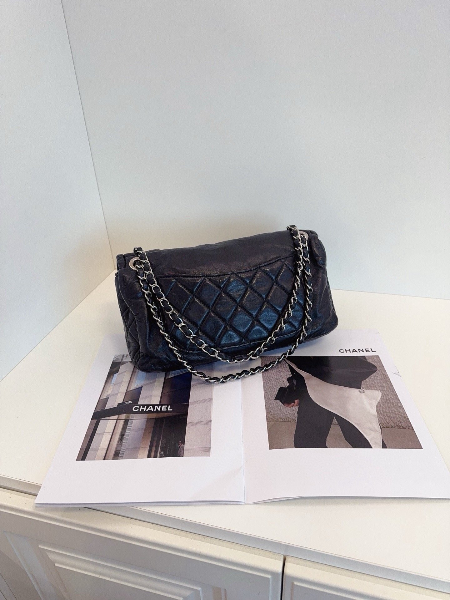 【預訂貨品】Chanel黑銀全皮法棍包