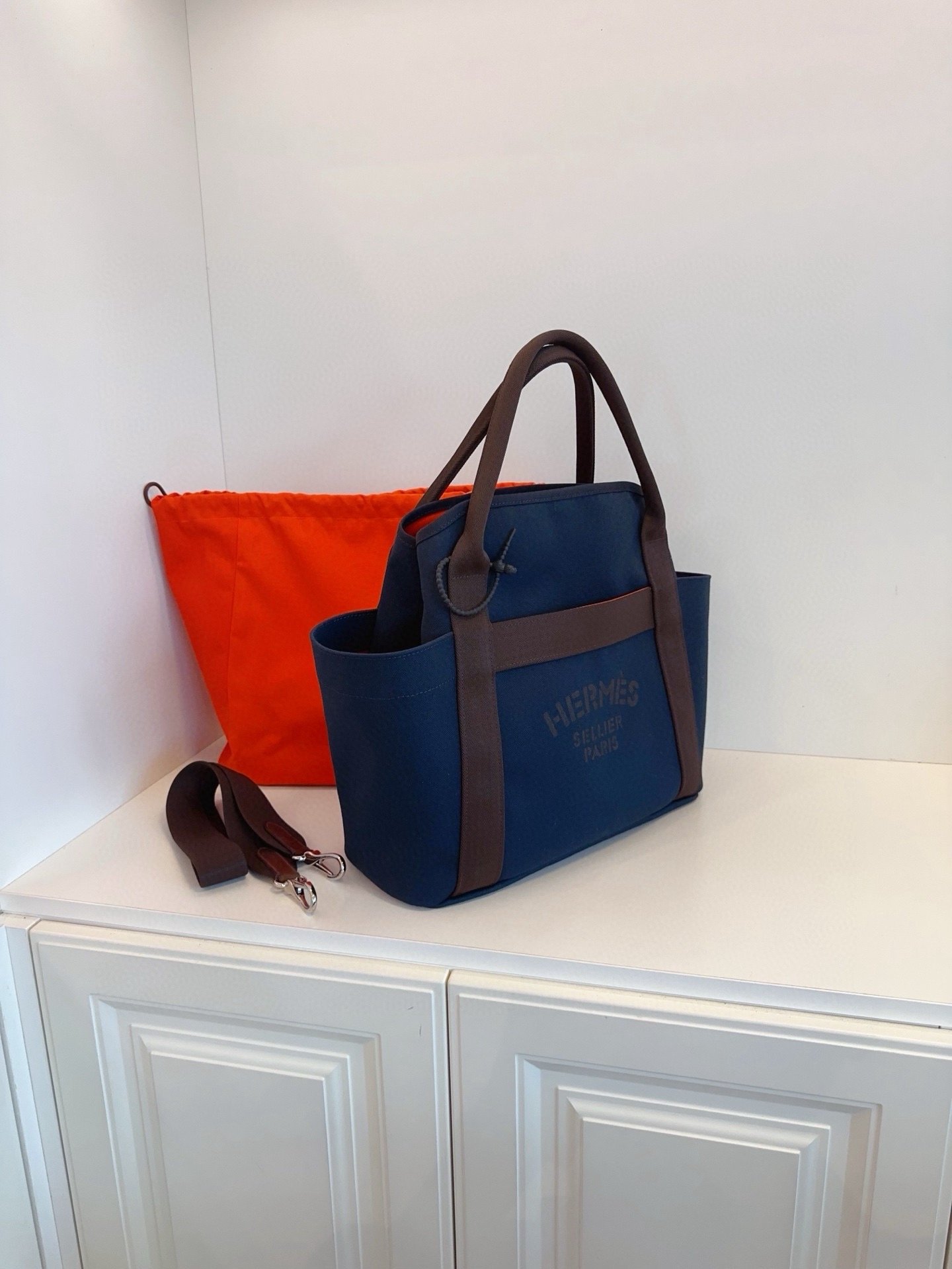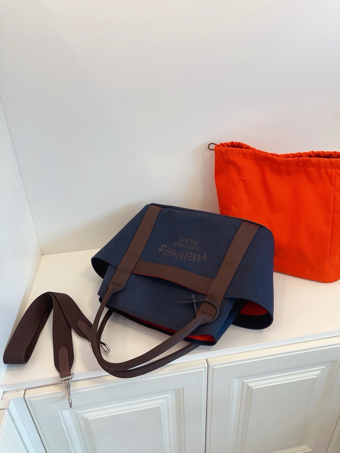 【預訂貨品】Hermes 午夜藍拼烏木色馬術包