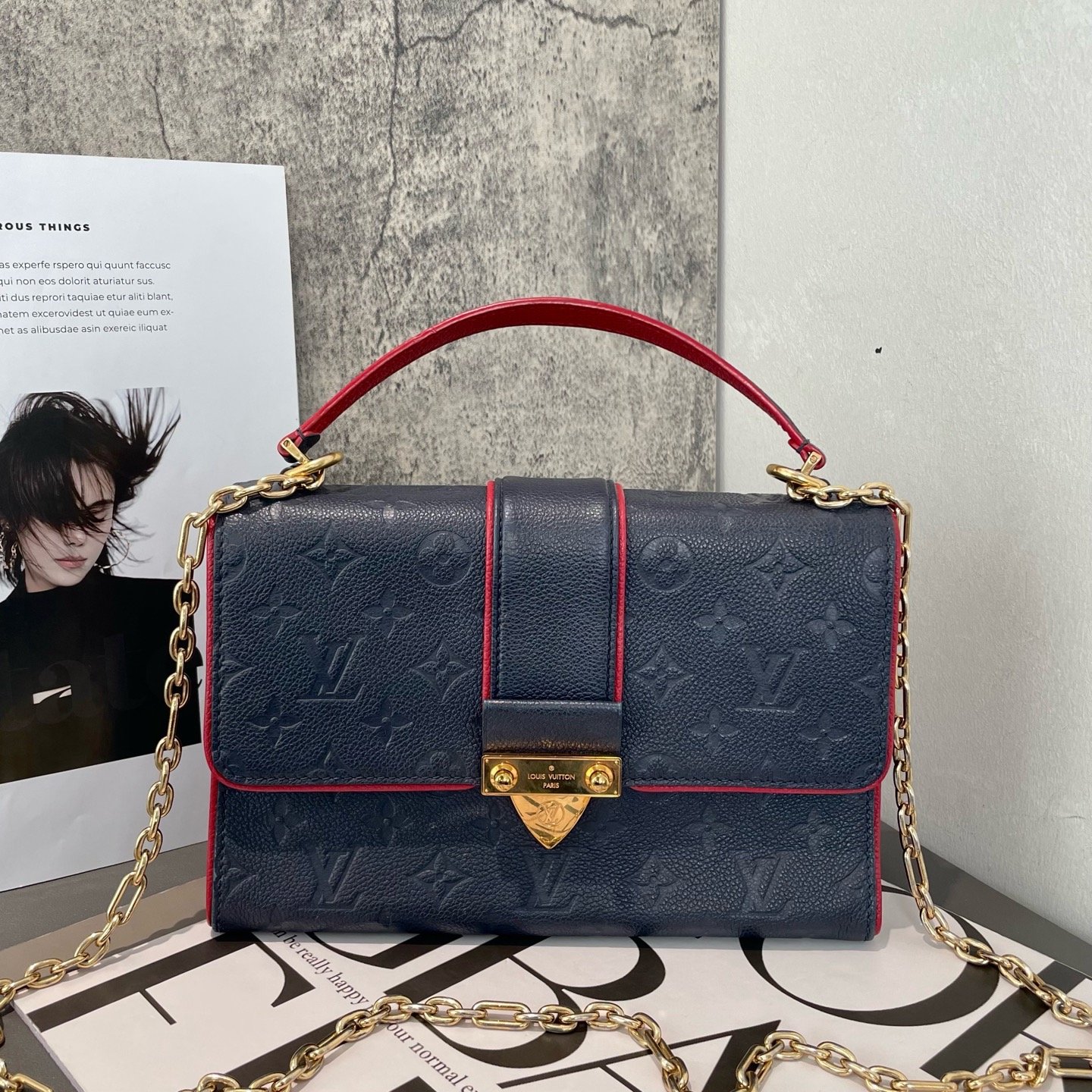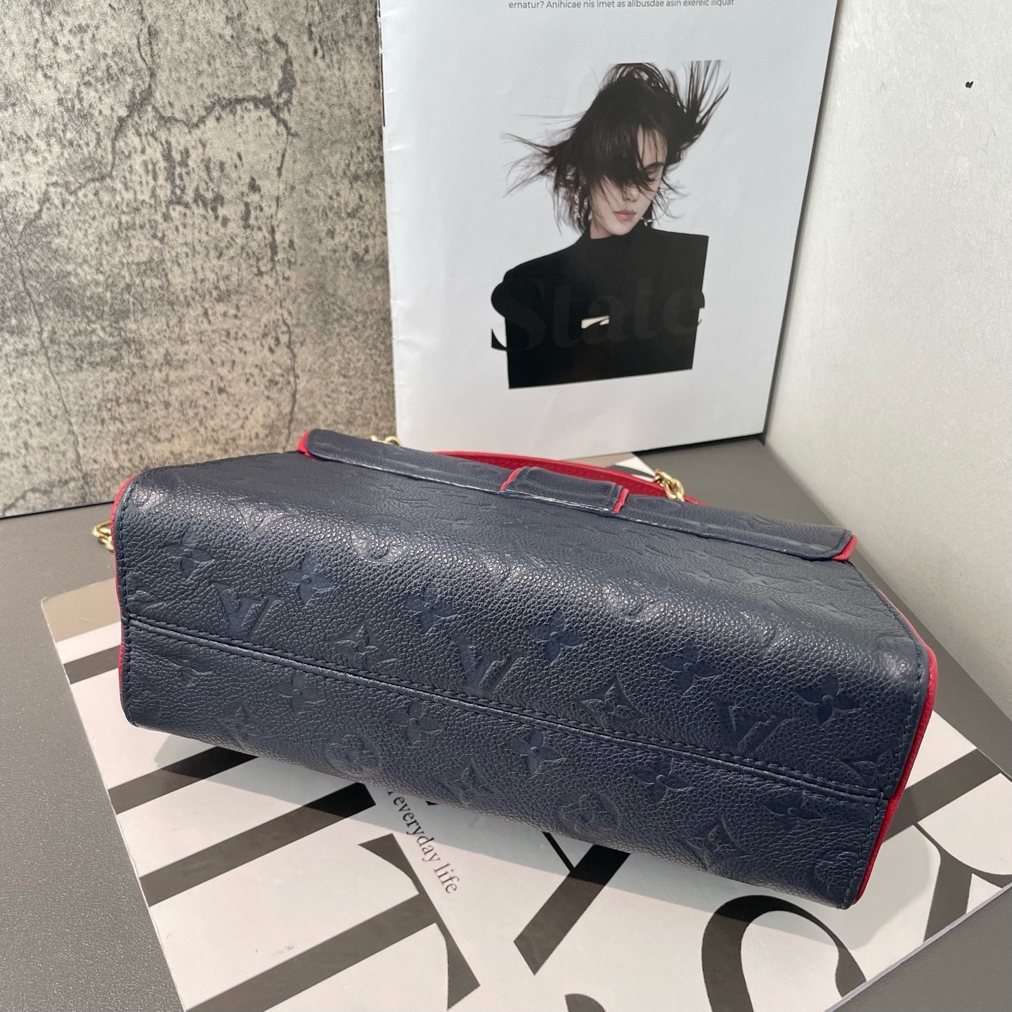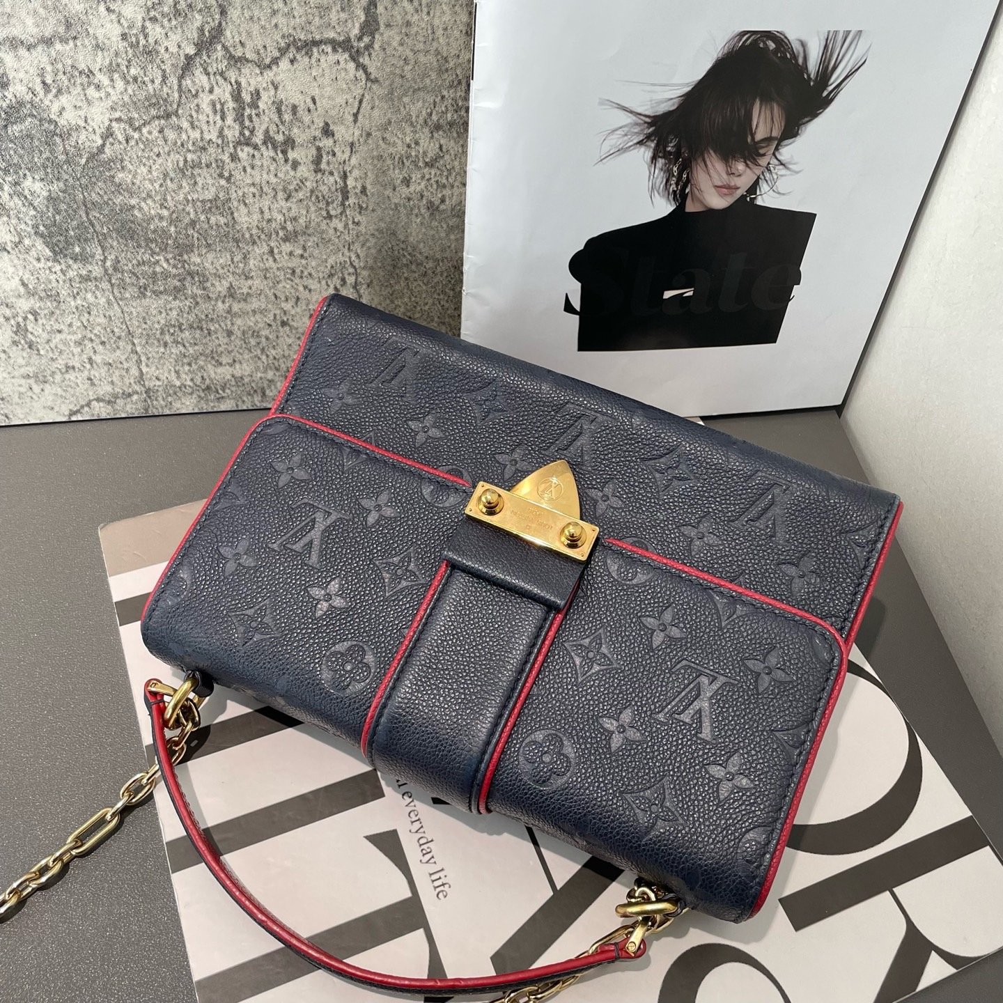 【預訂貨品】LV 深藍色全皮壓紋郵差包