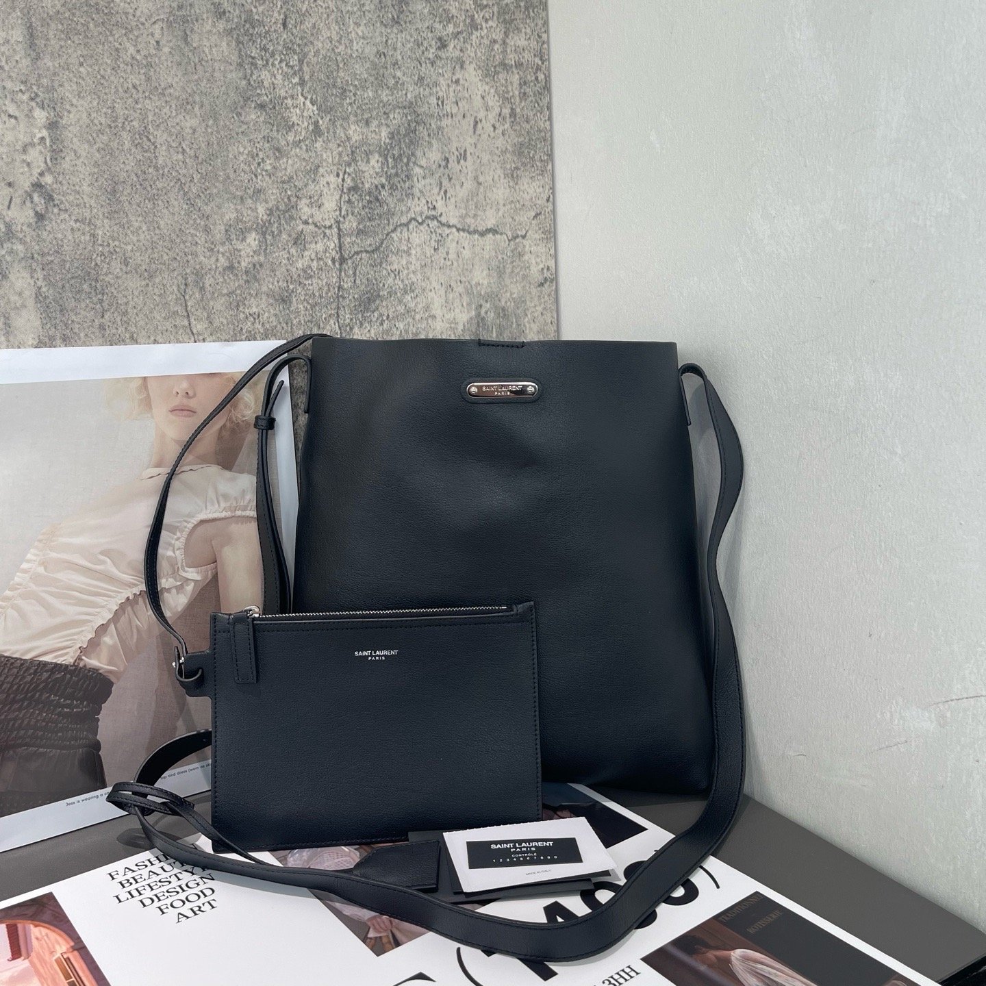 【預訂貨品】YSL黑色牛皮子母包